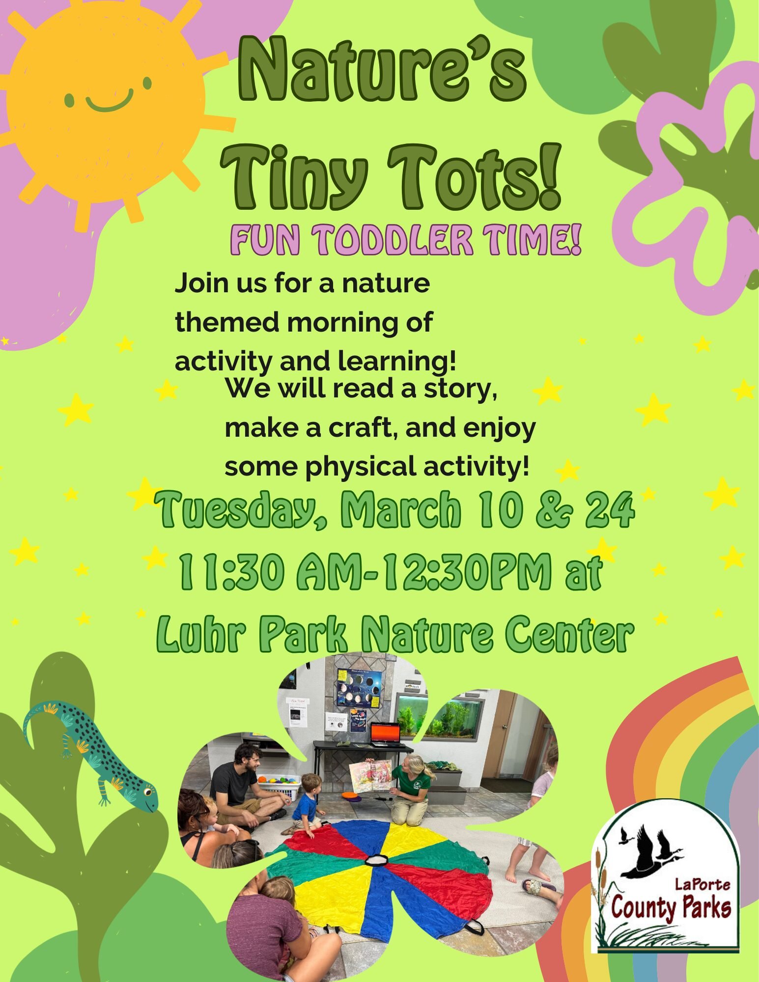 Bring your little one in for a nature themed morning of activity and learning at the Nature Center! We will read a story, make a craft, and enjoy some physical activity! No registration needed.