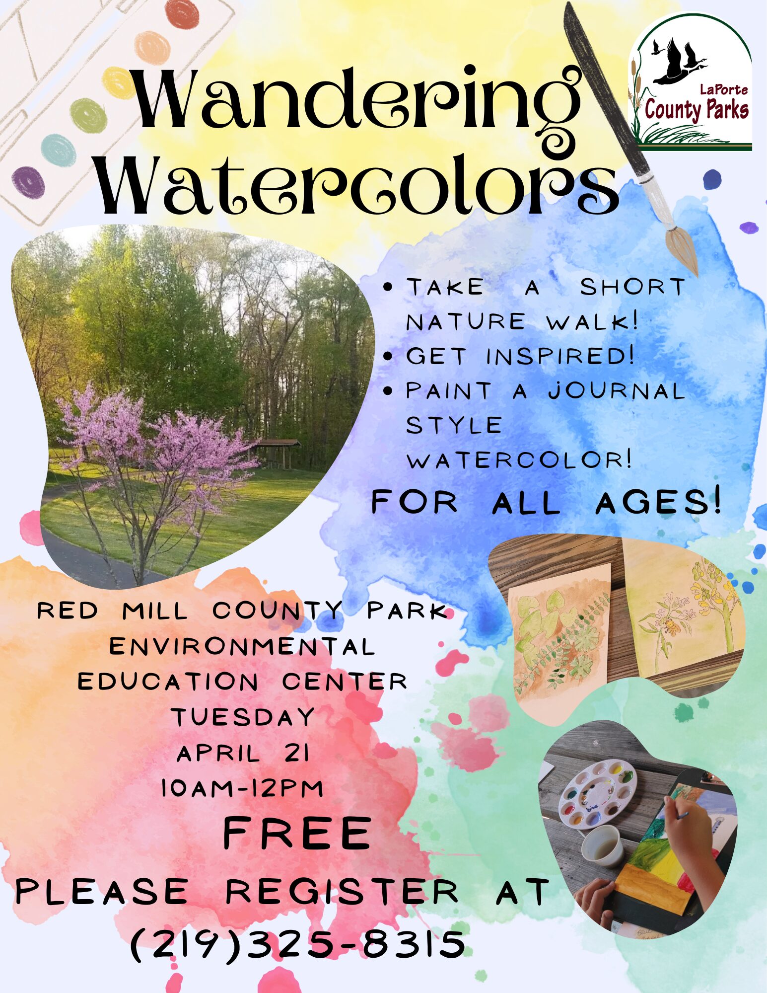 Let nature inspire you on a short walk around the park, then create your own nature journal style watercolor art by following along or creating something on your own. All supplies provided.