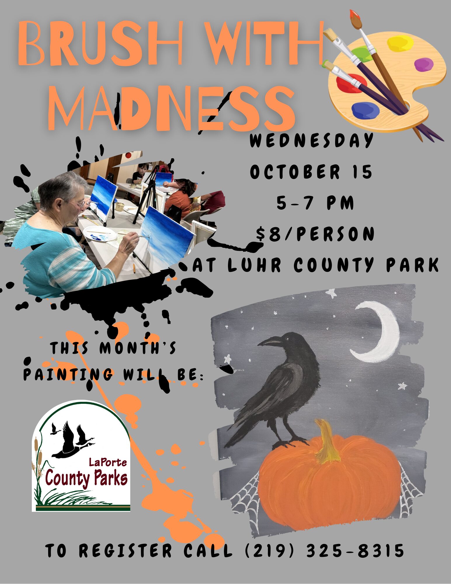 Luhr County Park 3178 S 150 W, La Porte, IN, United StatesTake home your very own masterpiece following a guided tutorial. [...]